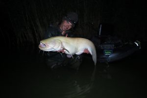 Fair is fair: those two weekends flew by and I thoroughly enjoyed myself. I fished in every possible way. From the bellyboat for catfish of course, with worms and quackwood and with softbaits. It soon turned out that these beasts here were real night owls, so I only took to the water at dusk to trudge around until I caught a big fish or until the battery of my electric motor ran down.